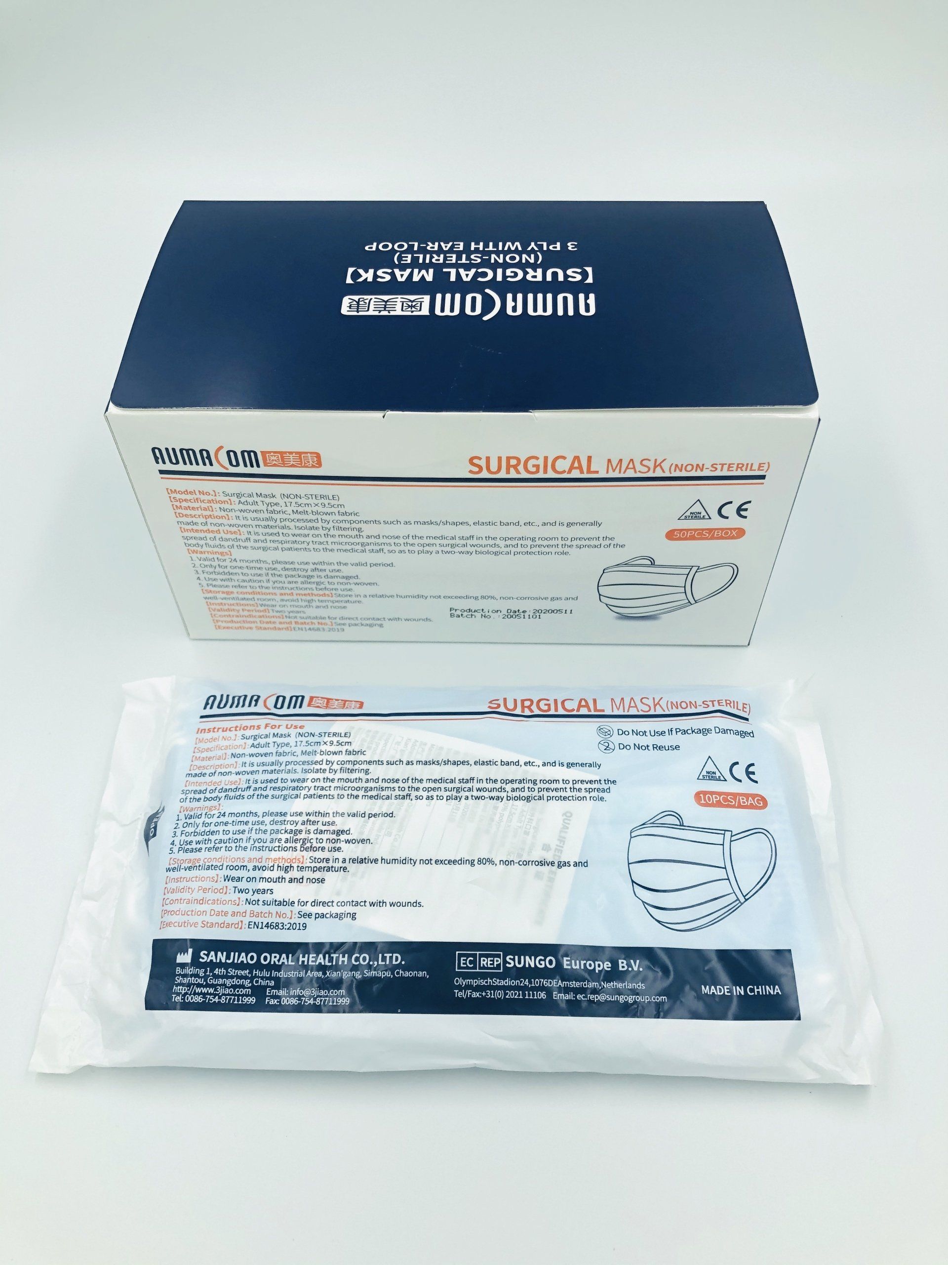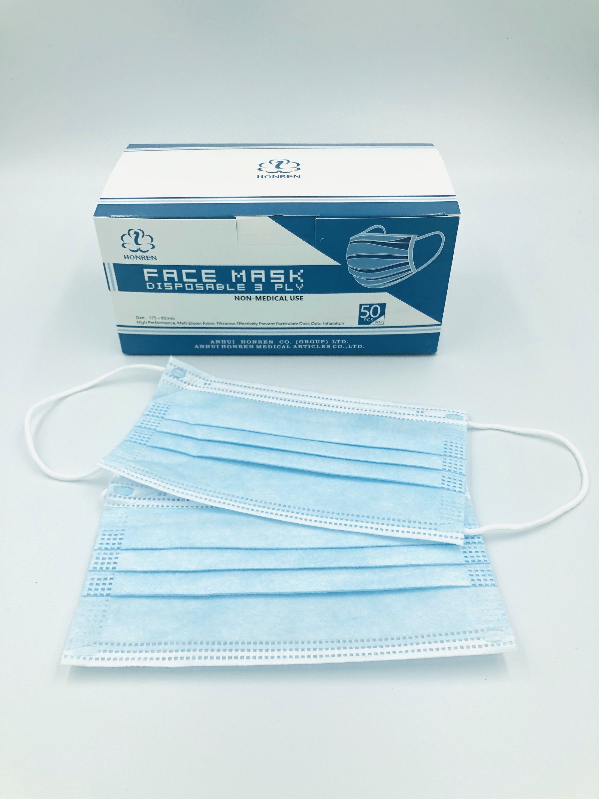 - 3-ply construction: the inner and outer layers of non-woven fabric, with an inner melt-blown filtration later